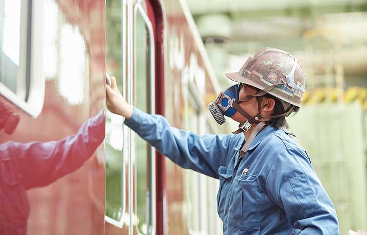 一般的にはない「電車の塗装」という特殊な事が出来る事と他の一般的な工業塗装も出来、幅広い塗装工法を学べるところです。